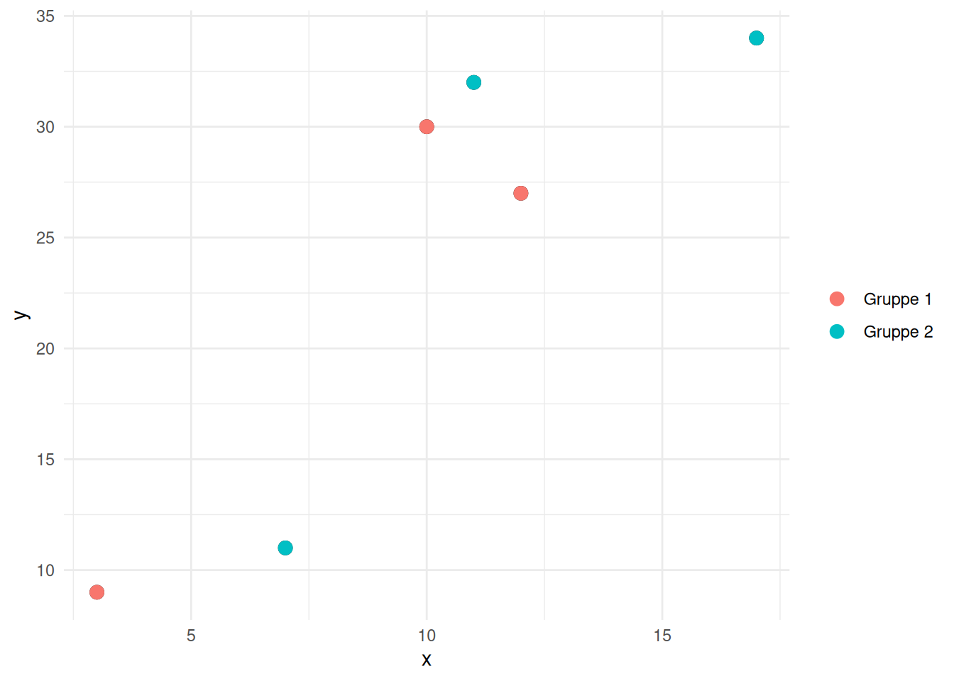 Gruppe 2 med punkterne \((10,30)\), \((17,34)\), \((12,27)\) og \((11,32)\).