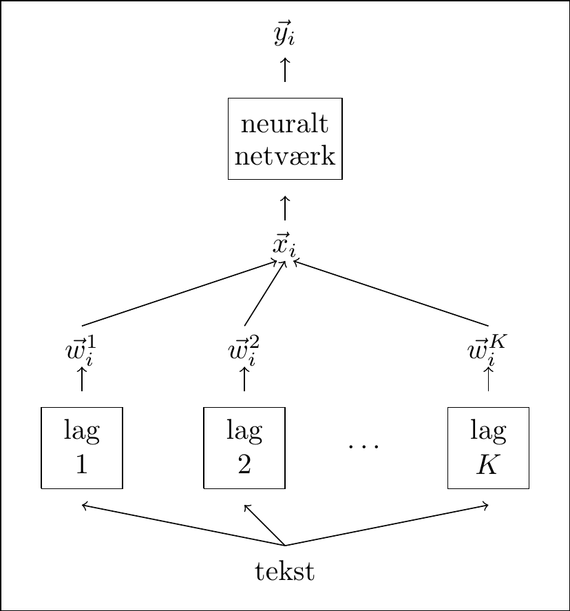 hvor \(\vec{v}_1,\ldots,\vec{v}_{i-1}\) er vektorrepræsentationerne for de \(i-1\) ord, der går forud for det \(i\)te ord. Desuden indgår nogle konstanter \(c_{j,i}\geq 0\), som er valgt, således at