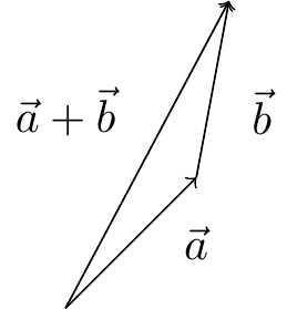 Geometrisk lægger man vektorerne \(\vec{a}\) og \(\vec{b}\) sammen ved først at tegne \(\vec{a}\) og derefter tegne \(\vec{b}\) med udgangspunkt, der hvor \(\vec{a}\) slutter. Vektoren \(\vec{a} + \vec{b}\) er så den vektor, der starter samme sted som \(\vec{a}\) og slutter, der hvor \(\vec{b}\) slutter.